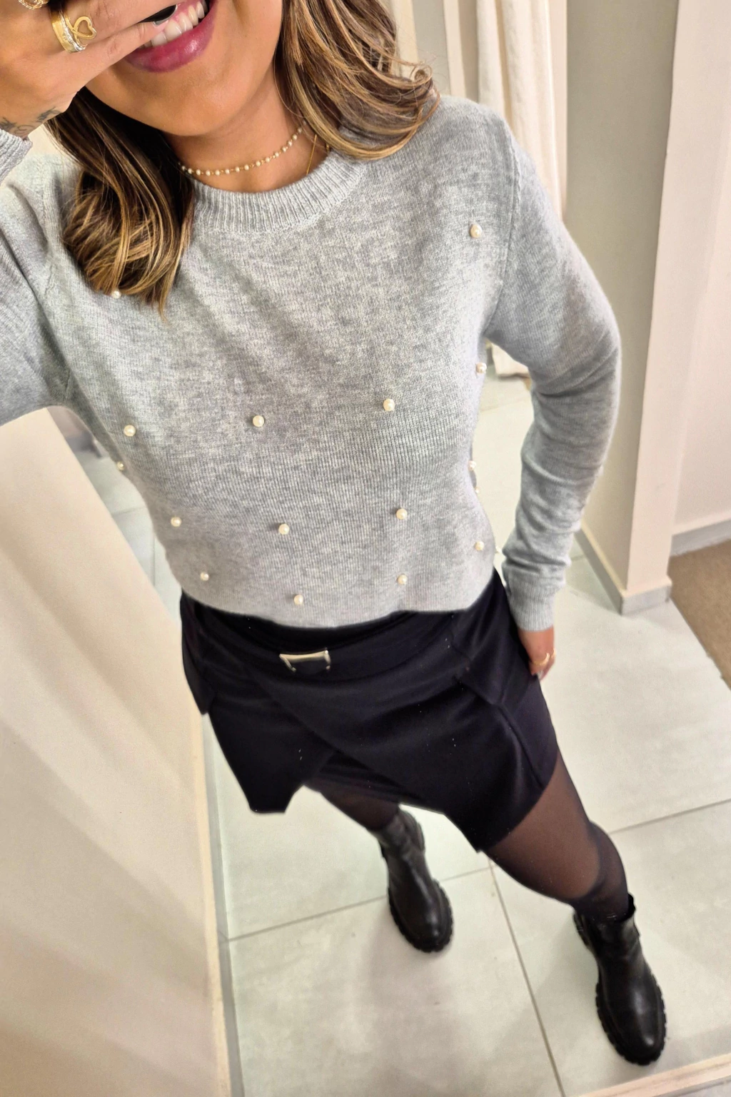- Tecido: Alfaiataria com leve elasticidade